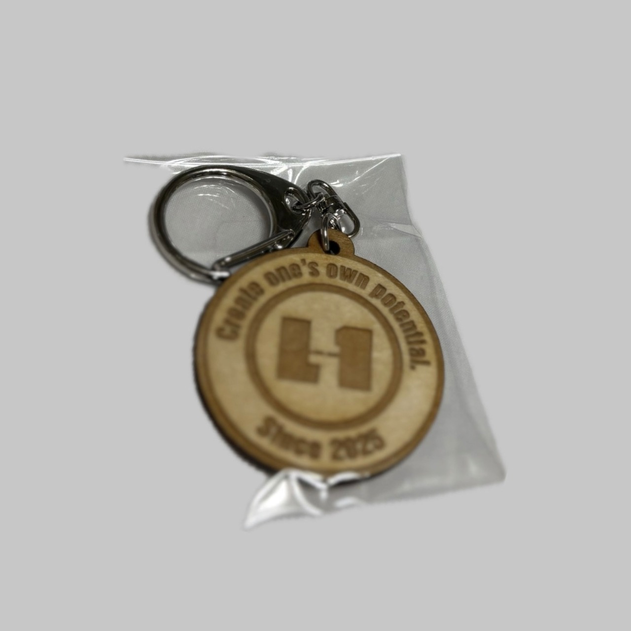 LINKONEのロゴと創業年が入ったかっこいいキーホルダー。